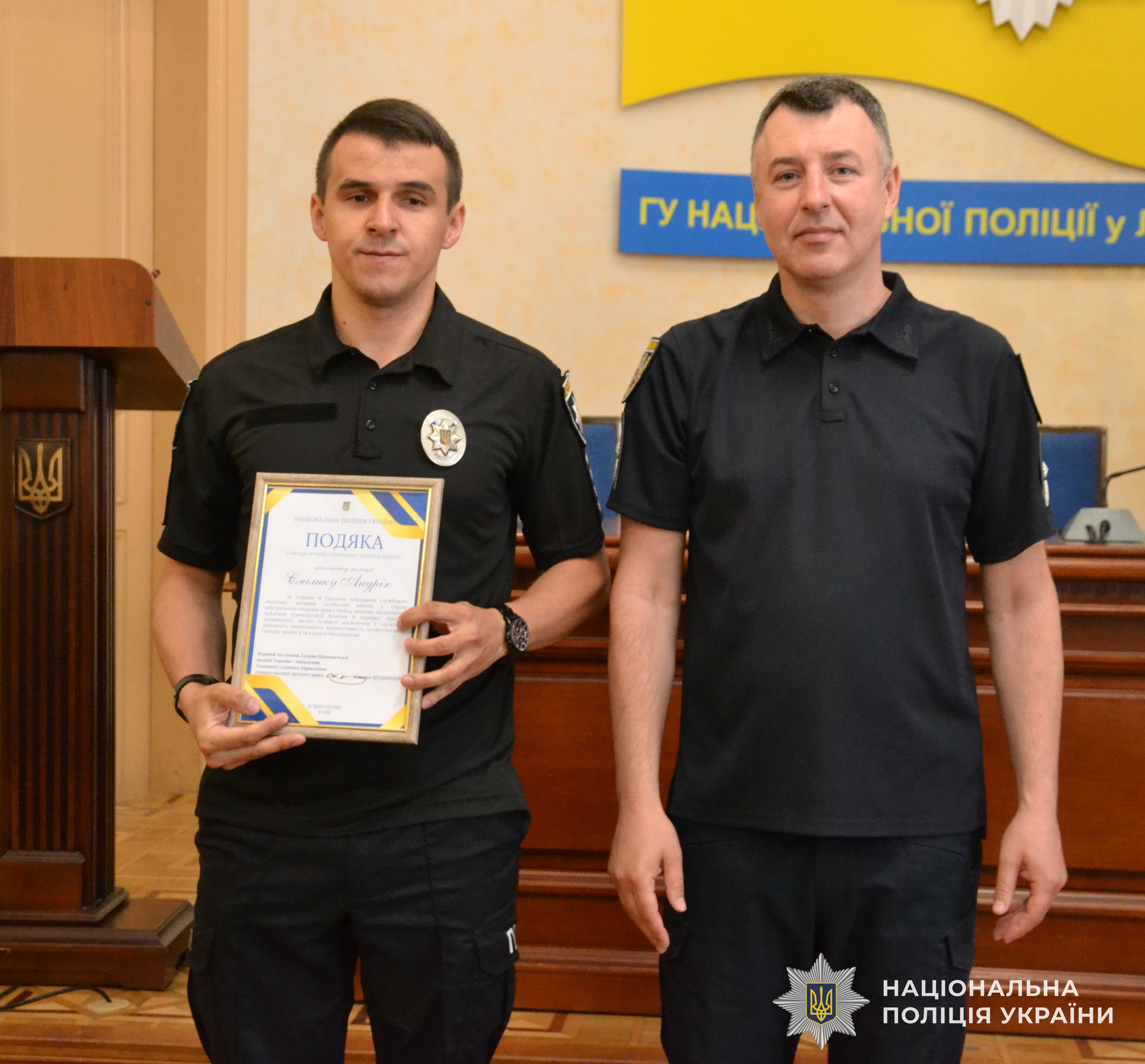 Кращих співробітників слідчих підрозділів Головного управління Національної поліції у Львівській області сьогодні, 1 липня, відзначили очільник поліції Львівщини генерал поліції третього рангу Олександр Шляховський, перший заступник Голови Львівської обласної військової адміністрації Андрій Годик, в.о. Голови Львівської обласної ради Юрій Холод, міський голова Львова Андрій Садовий та Голова Львівської обласної професійної спілки атестованих працівників органів внутрішніх справ України Ярослав Юнак.