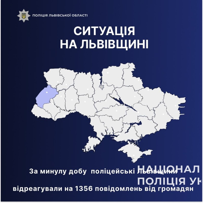 За минулу добу правоохоронці Львівської області відреагували на 1356 звернень громадян. Поліцейські виїжджали на виклики, надавали допомогу, забезпечували порядок та законність.