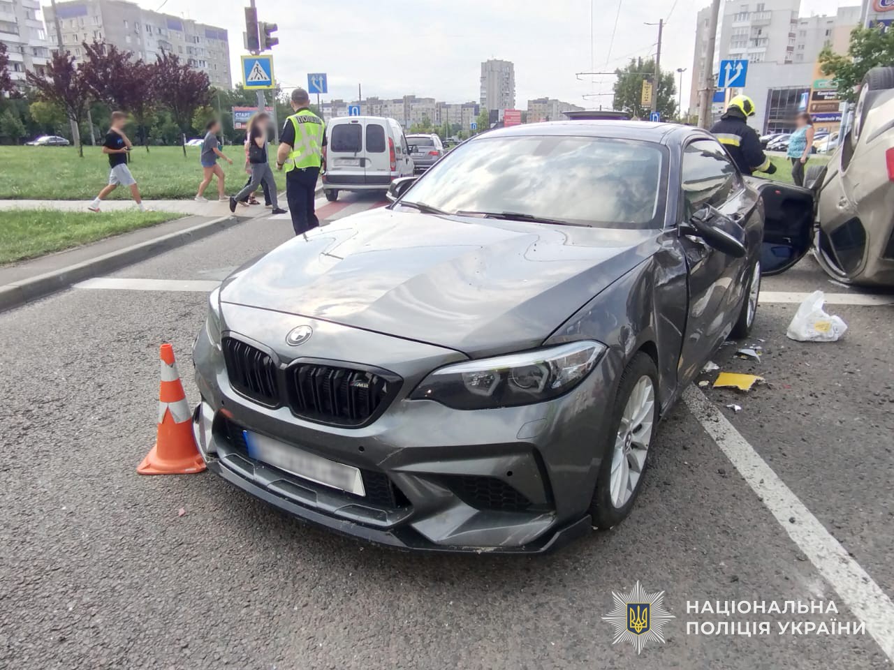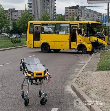 Відтак «Шкода» перекинулась, а далі – зіштовхнулась з автомобілем «БМВ», водійка якого зупинилась перед пішохідним переходом. Після цього, автобус продовжив рух та виїхав на узбіччя, де скоїв наїзд на електроопору.