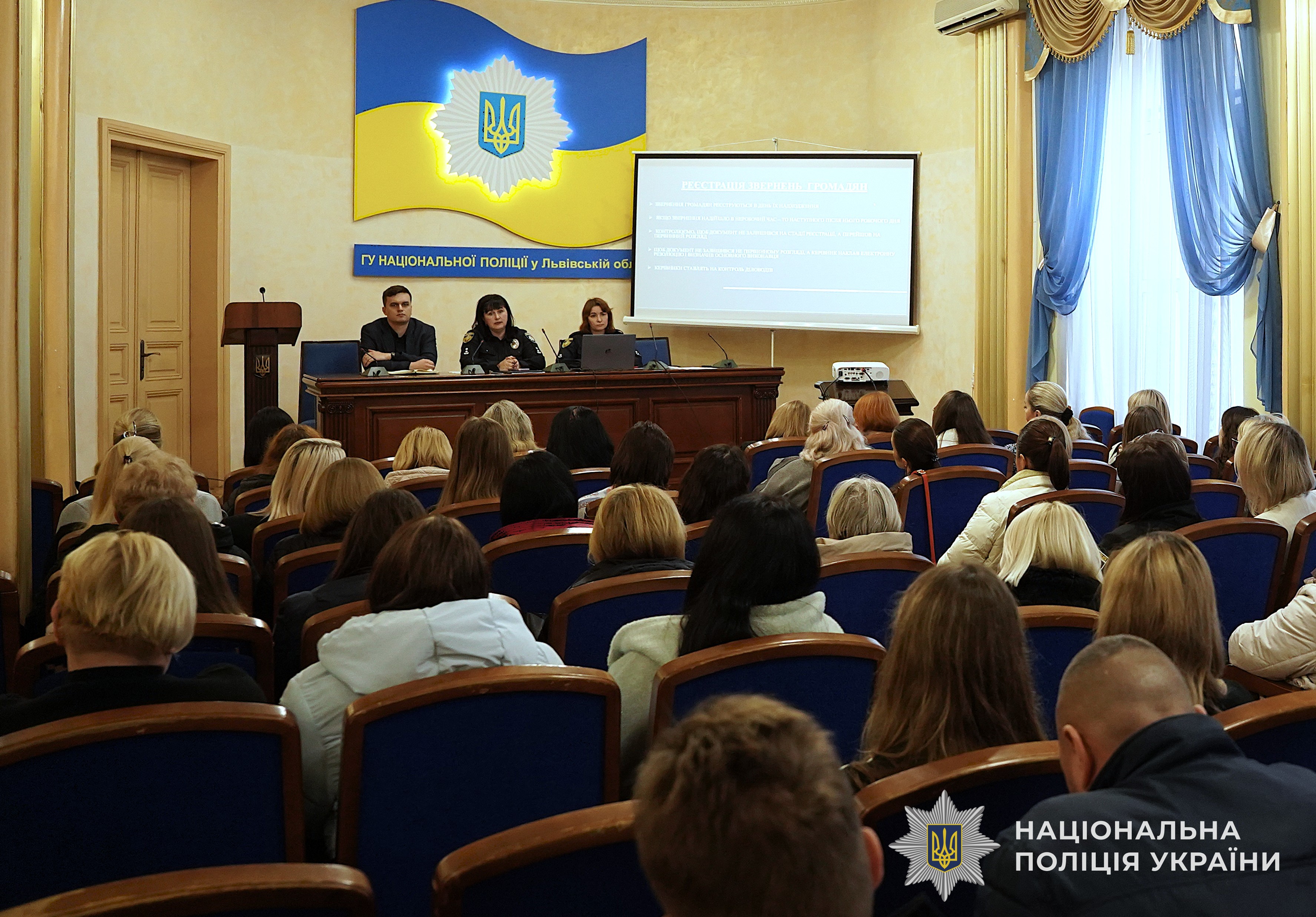 Сьогодні, 5 листопада, у Головному управлінні Національної поліції у Львівській області відбулась робоча нарада, учасники якої обговорили питання підвищення ефективності ведення діловодства в системі електронного документообігу, своєчасного скерування відповідей громадянам, коректного заповнення та оформлення таких відповідей, належного контролю за проходженням документів, а також ситуацію з попереднім розглядом заяв та скарг громадян, які надійшли до підрозділів поліції.
