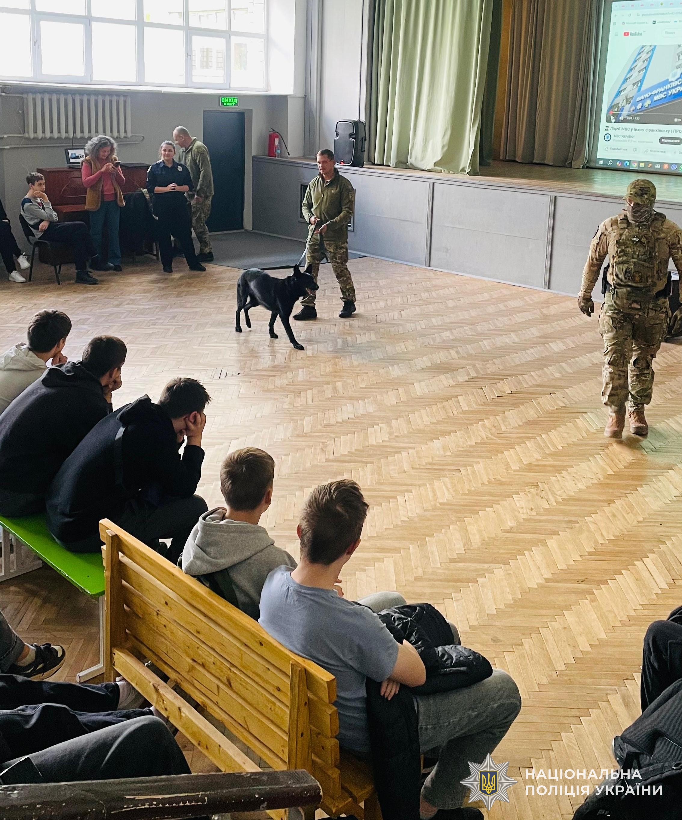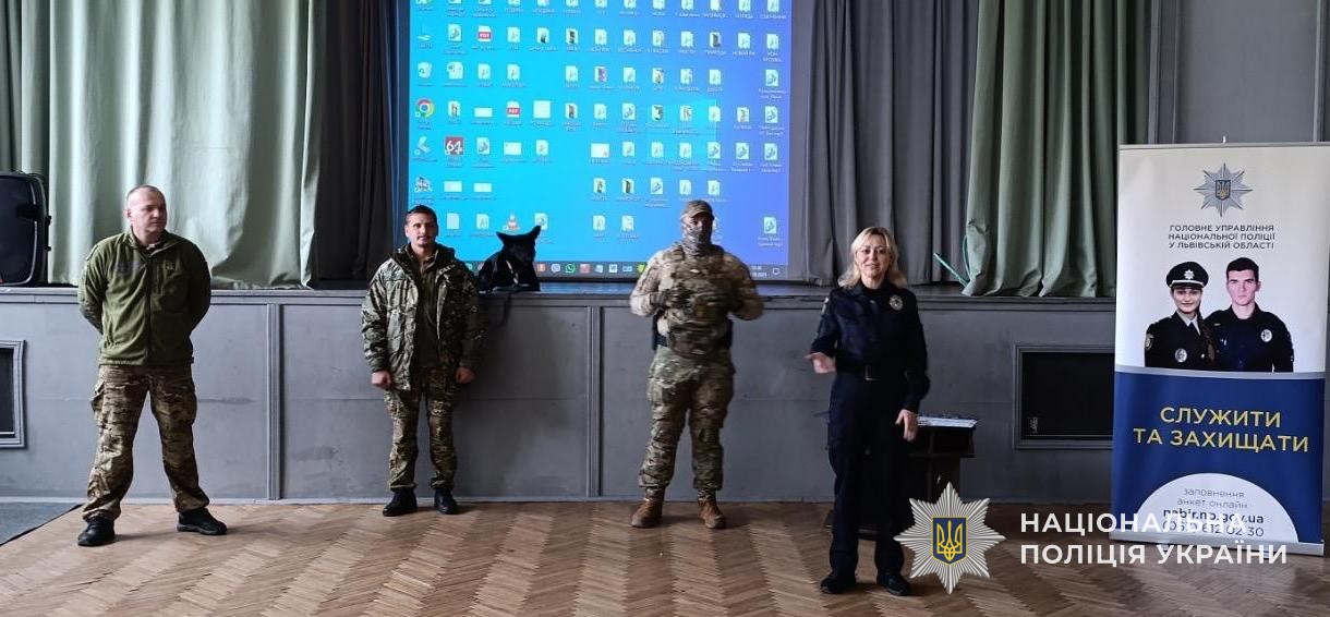 Співробітники сектору організації відбору управління кадрового забезпечення, управління вибухотехнічної служби, батальйону поліції особливого призначення та кінологічної служби поліції Львівщини провели профорієнтаційні заходи у львівських середніх загальноосвітніх школах № 99 та № 98.