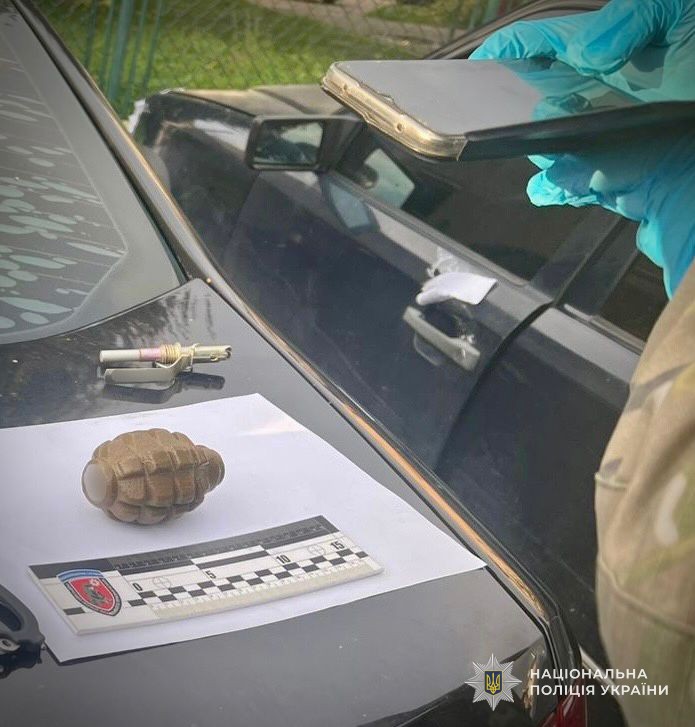 Правоохоронці вилучили з автомобіля предмет, схожий на гранату Ф-1 із підривачем типу УЗРГМ, які скерували на експертне дослідження. Автомобіль був доставлений на спецмайданчик.