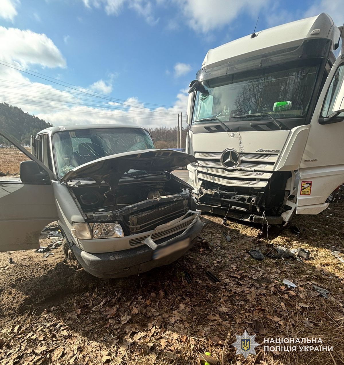 Як попередньо встановили правоохоронці, відбулося зіткнення мікроавтобуса Volkswagen Transporter, яким керував 37-річний житель Івано-Франківської області, та вантажівки Mercedes-Benz Actrоs під керуванням 48-річного мешканця Одеської області.
