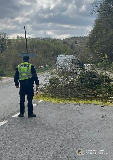 О 10:20 на автодорозі «Тернопіль-Львів-Рава-Руська» у межах села Плугів, Золочівського району, дерево впало на проїзну частину та унеможливило рух цією ділянкою. На місці події поліцейські відділення реагування патрульної поліції Золочівського районного відділу поліції здійснювали регулювання руху транспорту, пояснювали водіям маршрути об’їзду ділянки та допомогли комунальникам очистити дорогу та відновити рух.