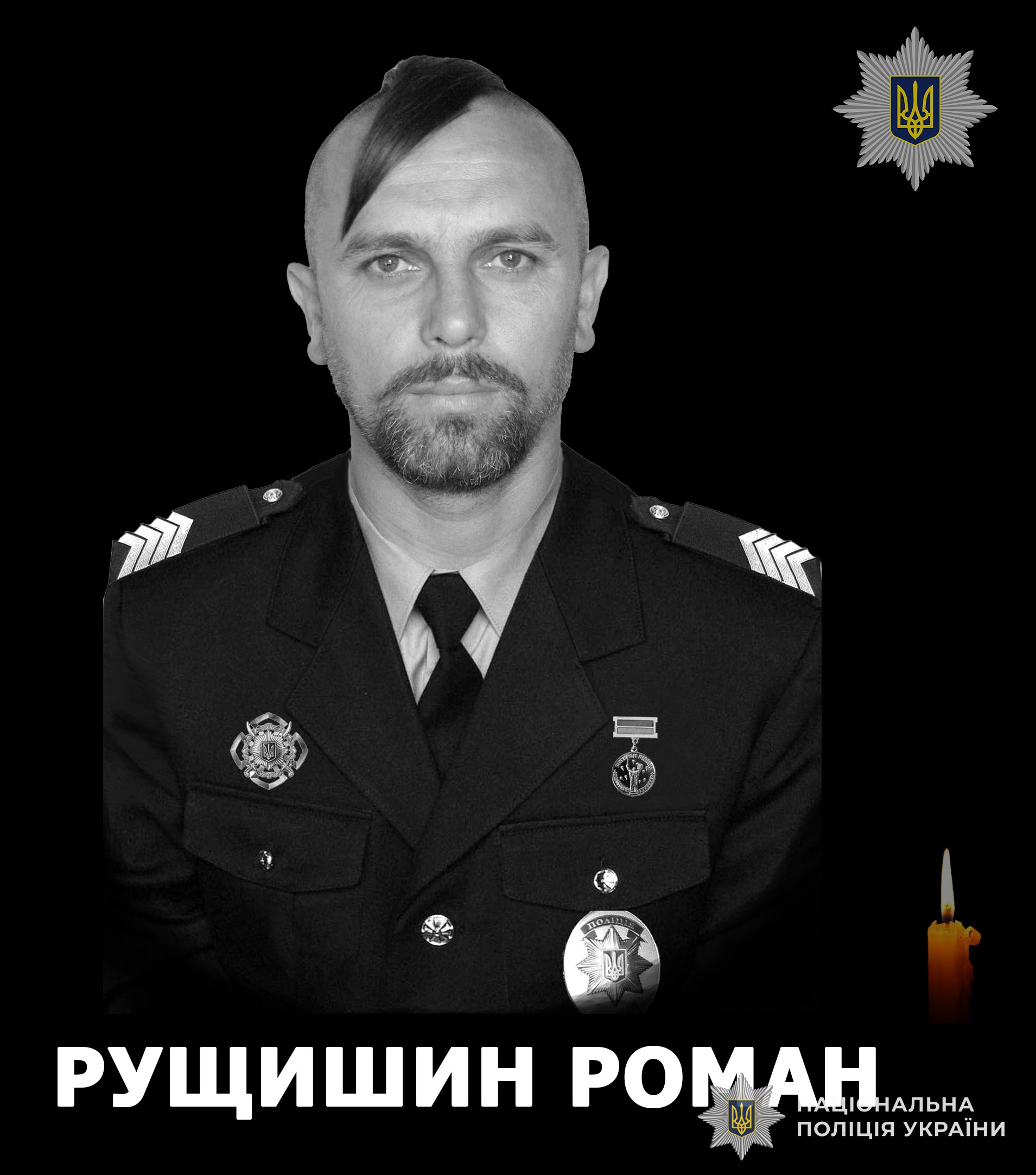 Старший сержант поліції Роман Рущишин, поліцейський батальйону патрульної служби поліції особливого призначення «Львів» Головного управління Національної поліції у Львівській області, вступив на службу добровольцем у перші дні російської агресії проти України. Загинув 7 березня 2022 року на Луганщині, захищаючи незалежність та територіальну цілісність нашої держави.
