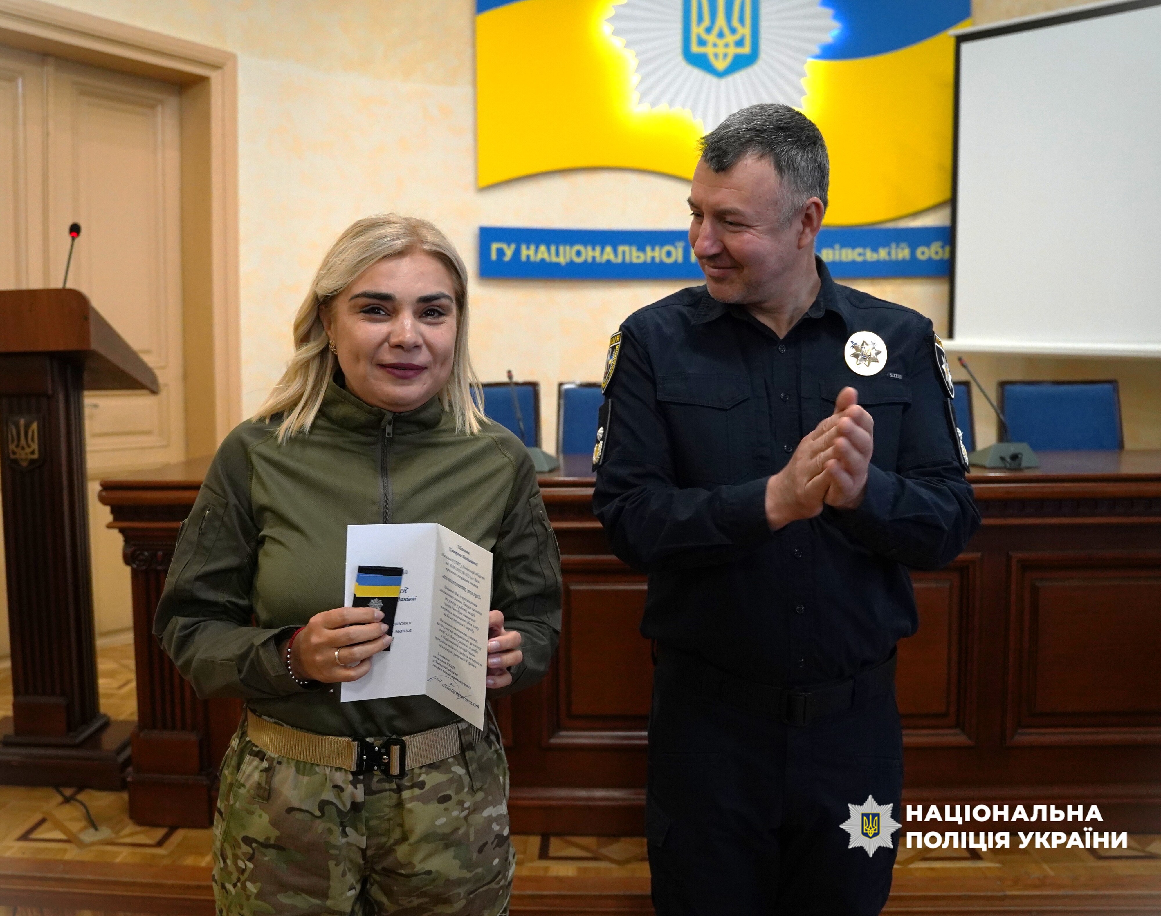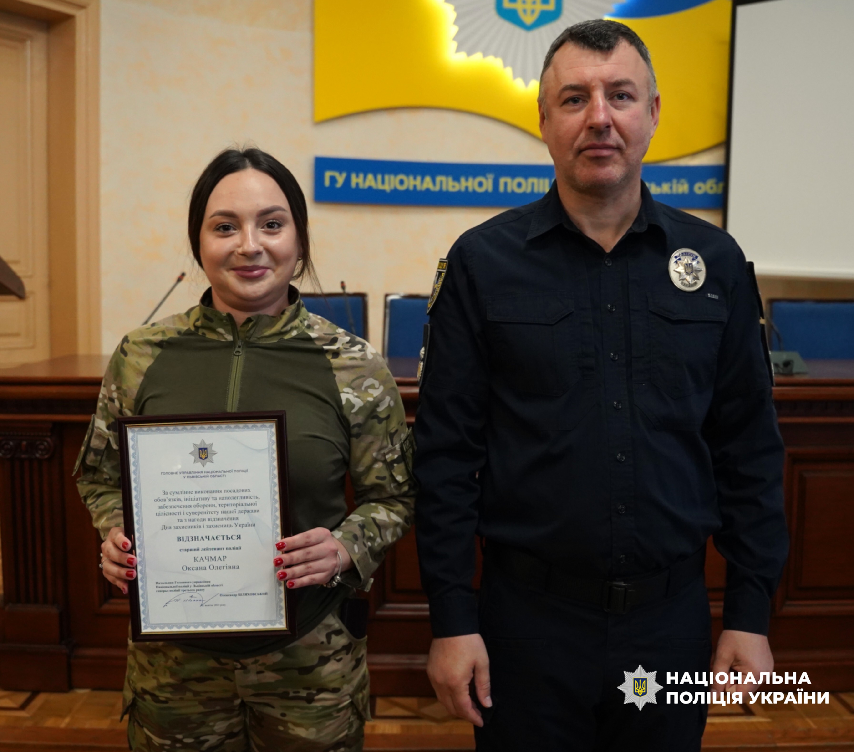 Поліцейські Львівщині, які воюють з російськими окупантами, отримали відзнаки та чергові спеціальні звання