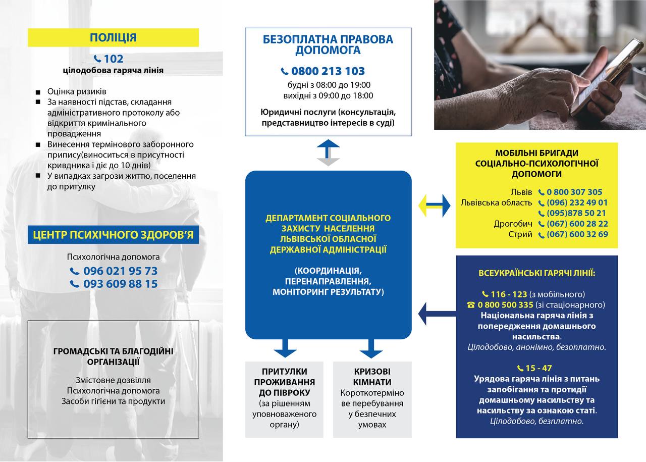 Під час круглого столу було представлено інформаційний буклет «Хто може допомогти людині літнього віку, коли проти неї вчиняють домашнє насильство», до створення якого долучилися, зокрема, поліцейські Львівщини. У буклеті надана інформація, куди звертатися людям похилого віку, якщо вони стали жертвами домашнього насильства. У подальшому буклет роздаватимуть громадянам у центрах надання правової допомоги, соціальних службах, бібліотеках, поліклініках, селищних радах тощо.