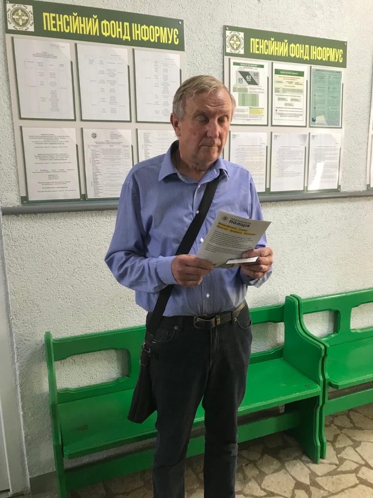 Крім того, поліцейські роздають листівки та пам’ятки, де зазначено алгоритм дій для уникнення шахрайства, а також куди звертатися, якщо ви все-таки стали його жертвою.