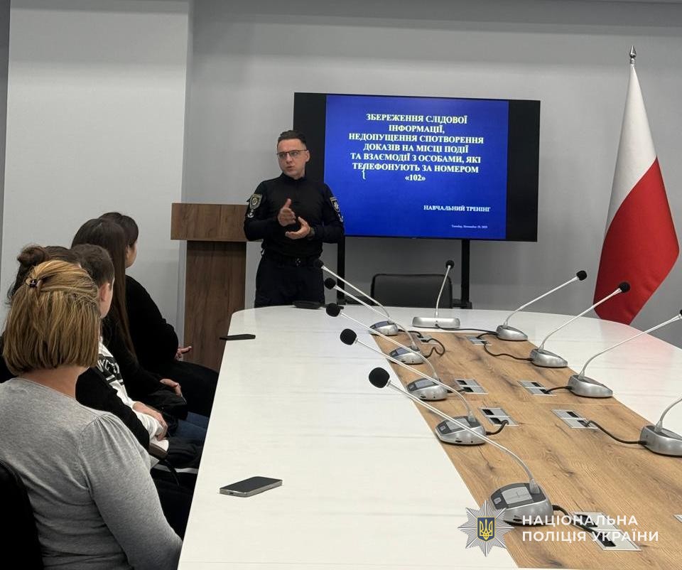 Керівництво відділу служби «102» поліції Львівщини провело для працівників тренінг на тему «Збереження слідової інформації, недопущення спотворення доказів на місці події та взаємодії з особами, які телефонують за номером «102».