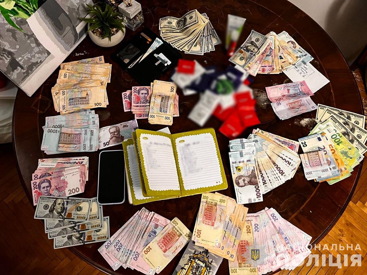 За фізичної підтримки відділу швидкого реагування ДВБ, бійців поліції особливого призначення та ТОР Департаменту патрульної поліції правоохоронці провели у фігурантів більше 70 одночасних санкціонованих обшуків у кількох областях. Під час яких виявили і вилучили гроші, зокрема: близько 1,4 млн гривень, понад 660 тисяч доларів, майже 400 тисяч євро та іншу валюту, мобільні телефони, банківські картки, золоті прикраси, вогнепальну зброю та авто.