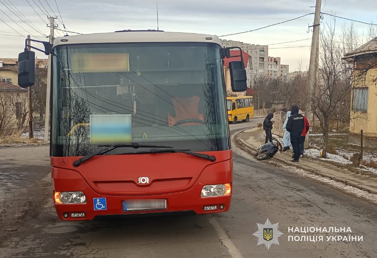 У Бориславі внаслідок зіткнення з автобусом травмований неповнолітній пасажир мопеда – поліцейські встановлюють обставини події