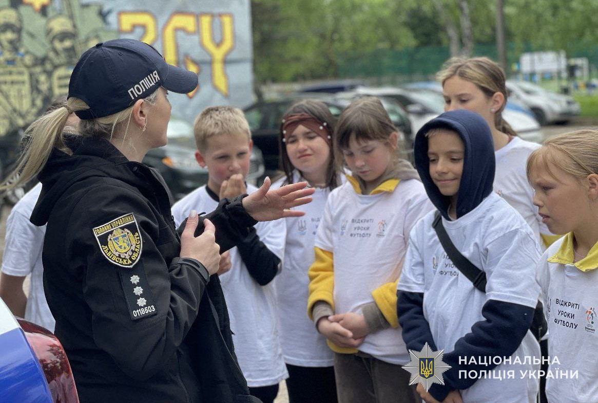 У Дрогобичі правоохоронці дали дітям урок гри у футбол