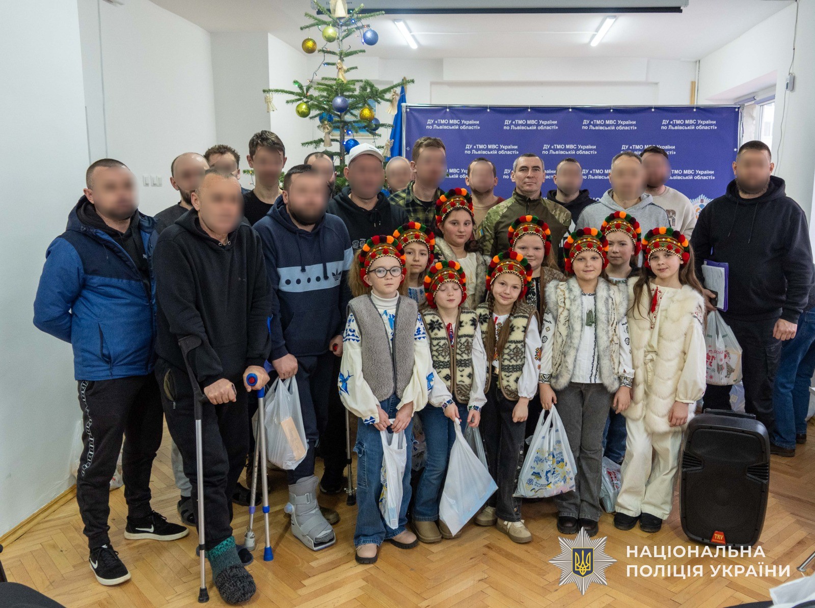 У понеділок, 23 грудня, бійці стрілецького підрозділу КОРД поліції Львівщини, Об’єднаної штурмової бригади Національної поліції «Лють», а також військовослужбовці Національної гвардії України, які проходять лікування та реабілітацію у відомчому медичному закладі, отримали подарунки від своїх старших товаришів — ветеранів правоохоронних органів.
