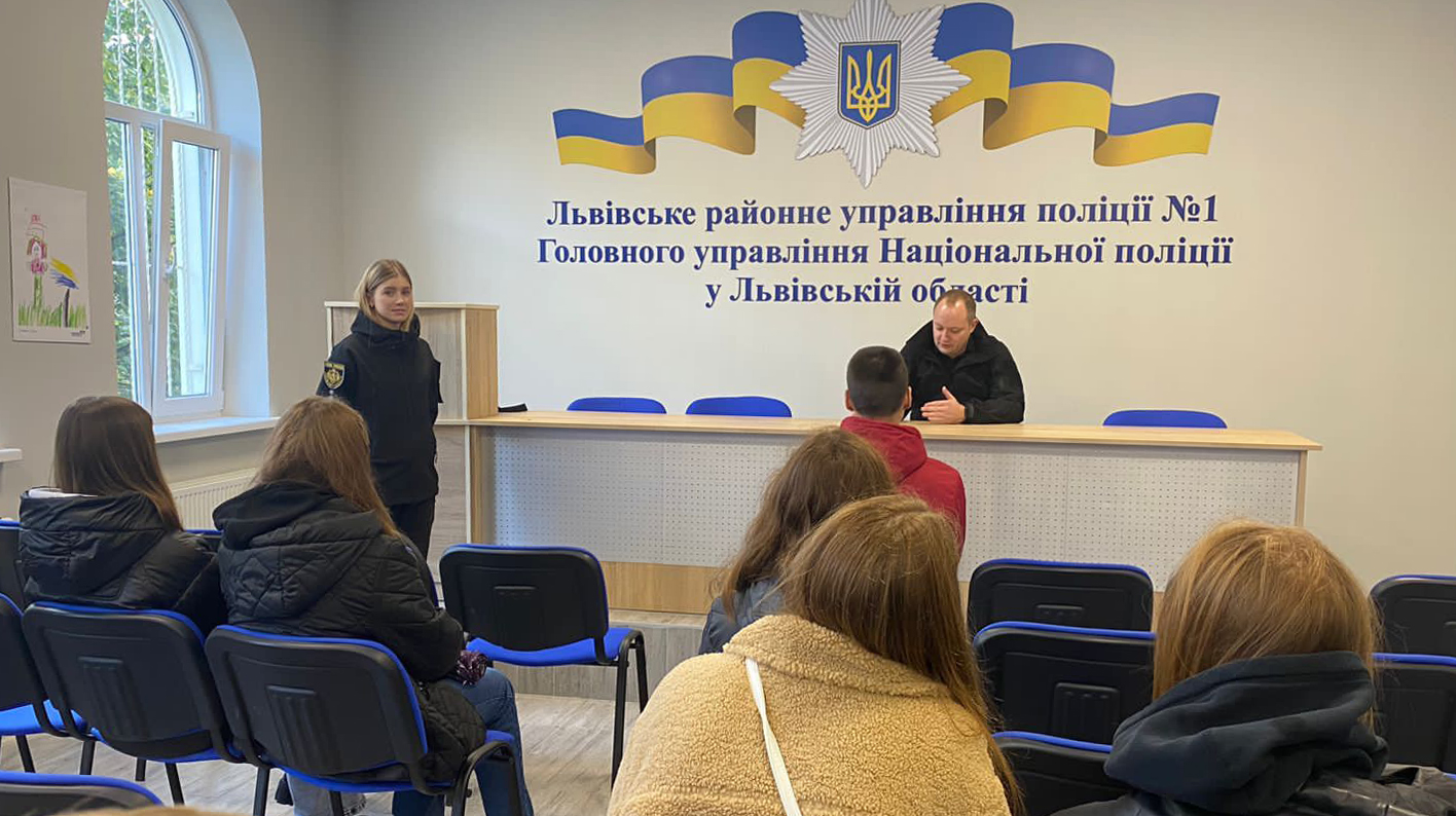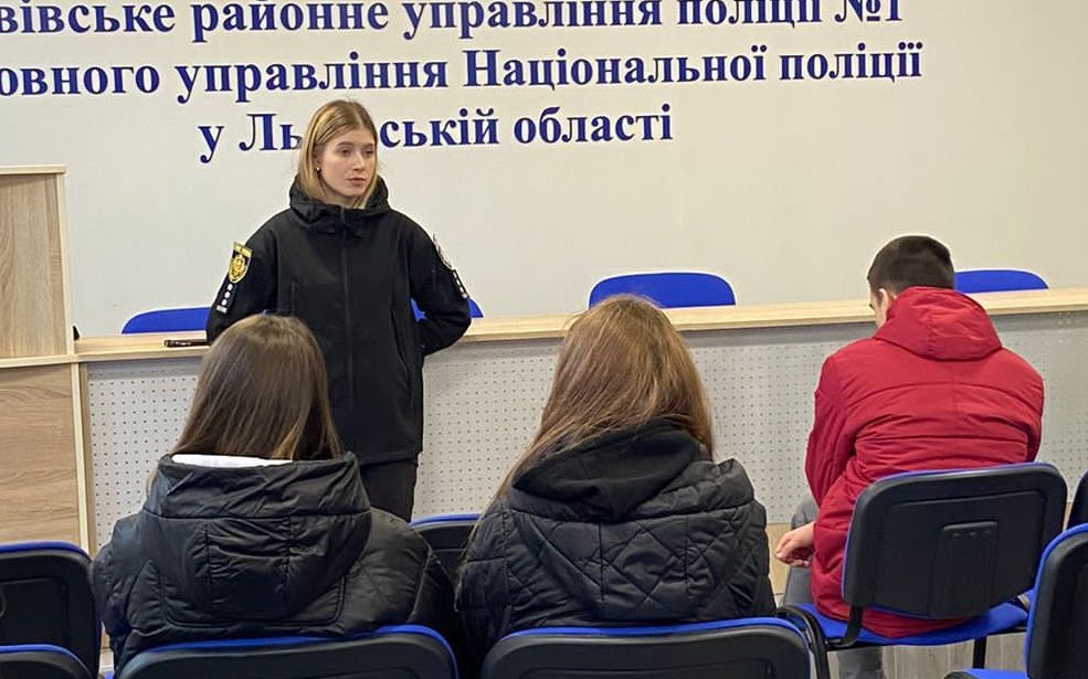 Ювенальні поліцейські запросили до Львівського районного управління поліції №1 львівських школярів, які відвідують гурток управління молодіжної політики Львівської міської ради «BizSmart», та ознайомили їх із професією поліцейського.