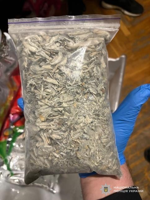 Під час санкціонованих обшуків у помешканнях затриманих поліцейські виявили та вилучили: пакунок з речовиною, схожою на наркотичний засіб «канабіс», пакунок з псилоцибіновими грибами, таблетки MDMA, пакунок з речовиною, схожою на психотроп PVP, 10 зіп-пакетів з речовиною, схожою на психотроп мефедрон, марки LSD, засоби для фасування та інші речові докази їх протиправної діяльності. Усе вилучене скеровано на експертне дослідження. Приблизна вартість вилучених речовин за цінами «чорного» ринку становить понад 300 тисяч гривень.
