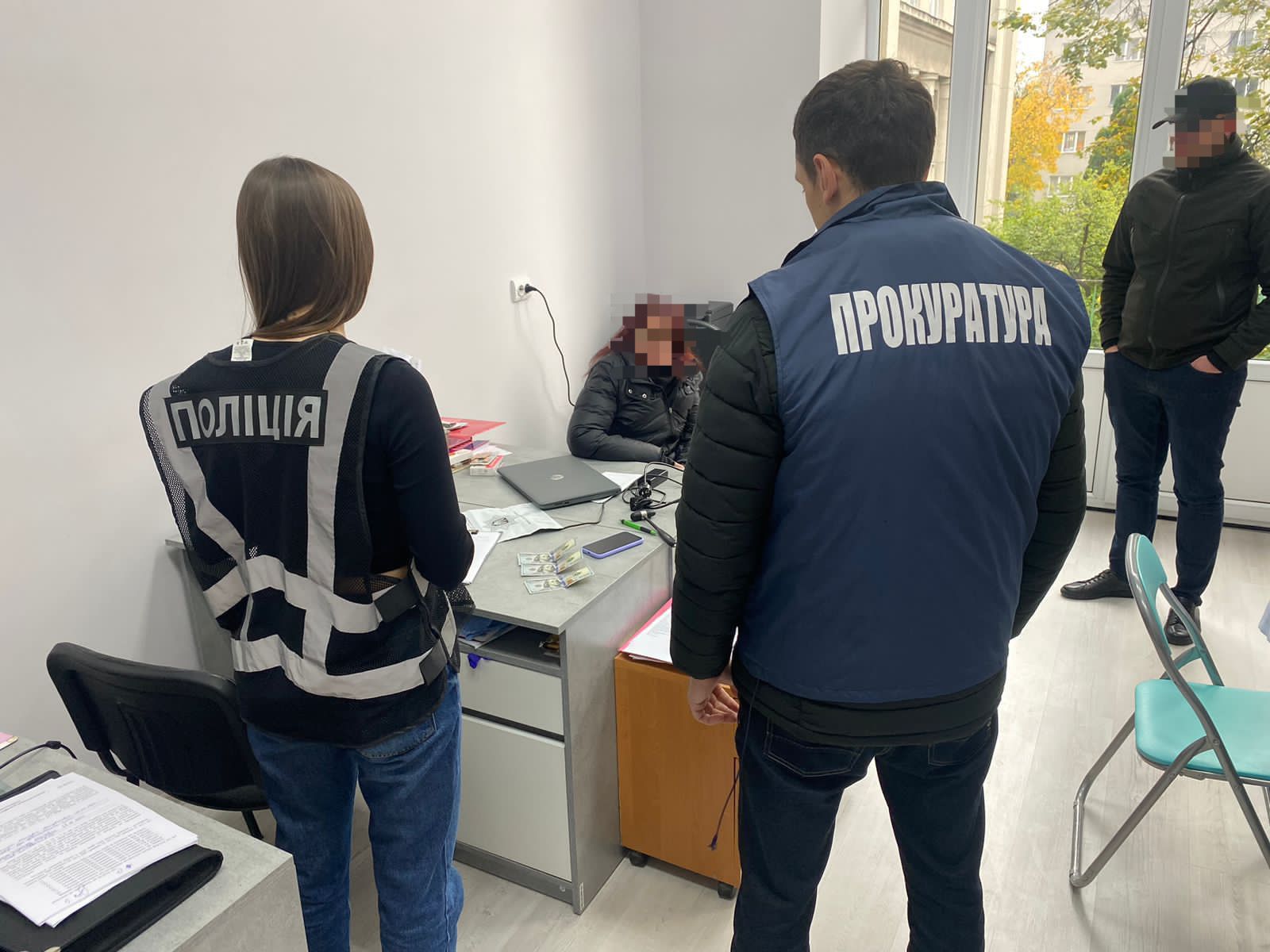 17 жовтня правоохоронці затримали одну із зловмисниць в порядку ст.208 Кримінального процесуального кодексу України у службовому кабінеті під час одержання нею частини неправомірної вигоди у сумі 300 доларів США.
