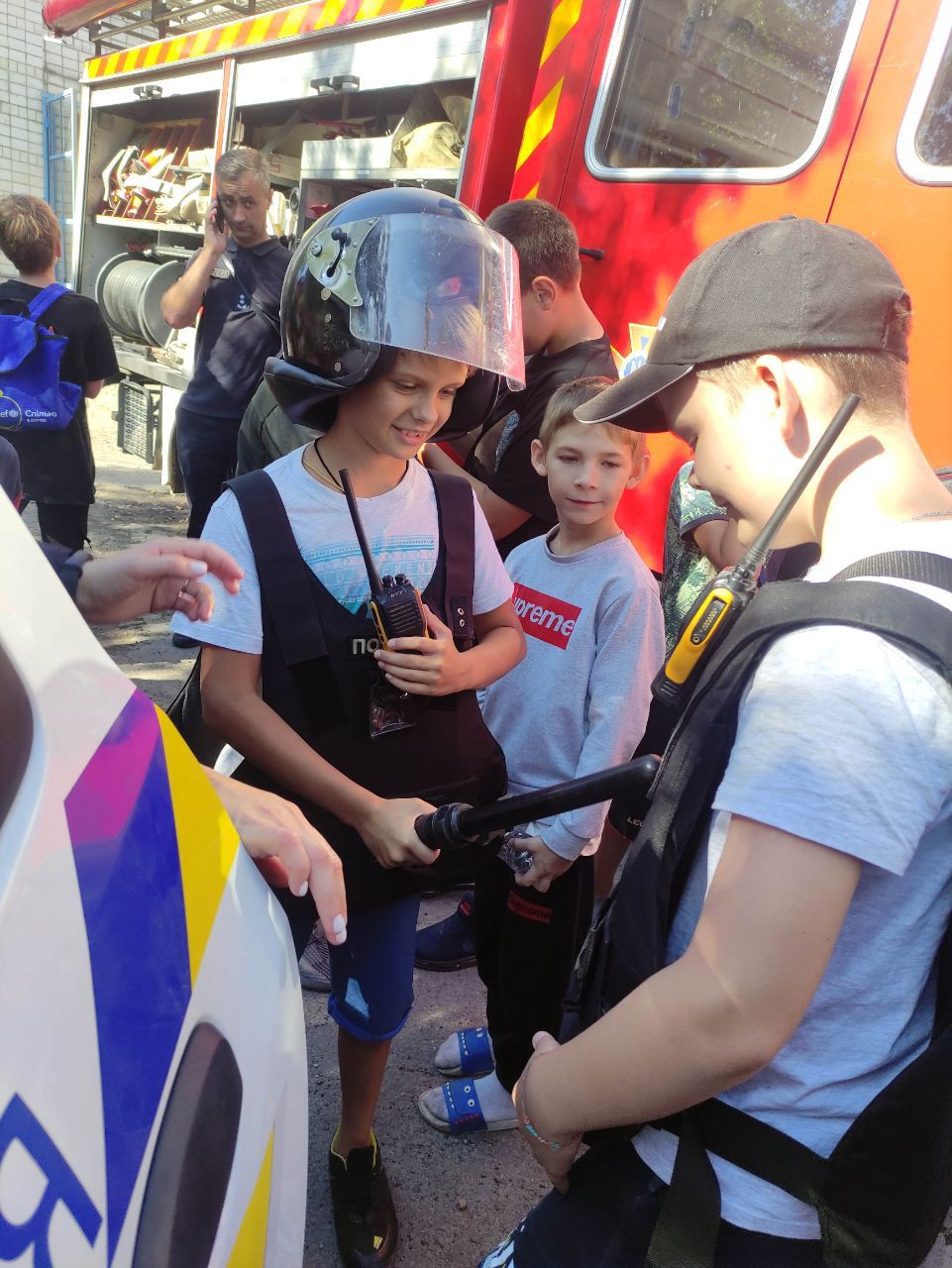 Крім того, діти мали змогу приміряти амуніцію та посидіти у службовому автомобілі – словом, відчути себе справжнім поліцейським. І, звісно, зробити селфі та фотографії з поліцейськими на теплу згадку.