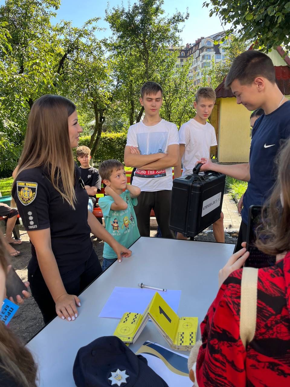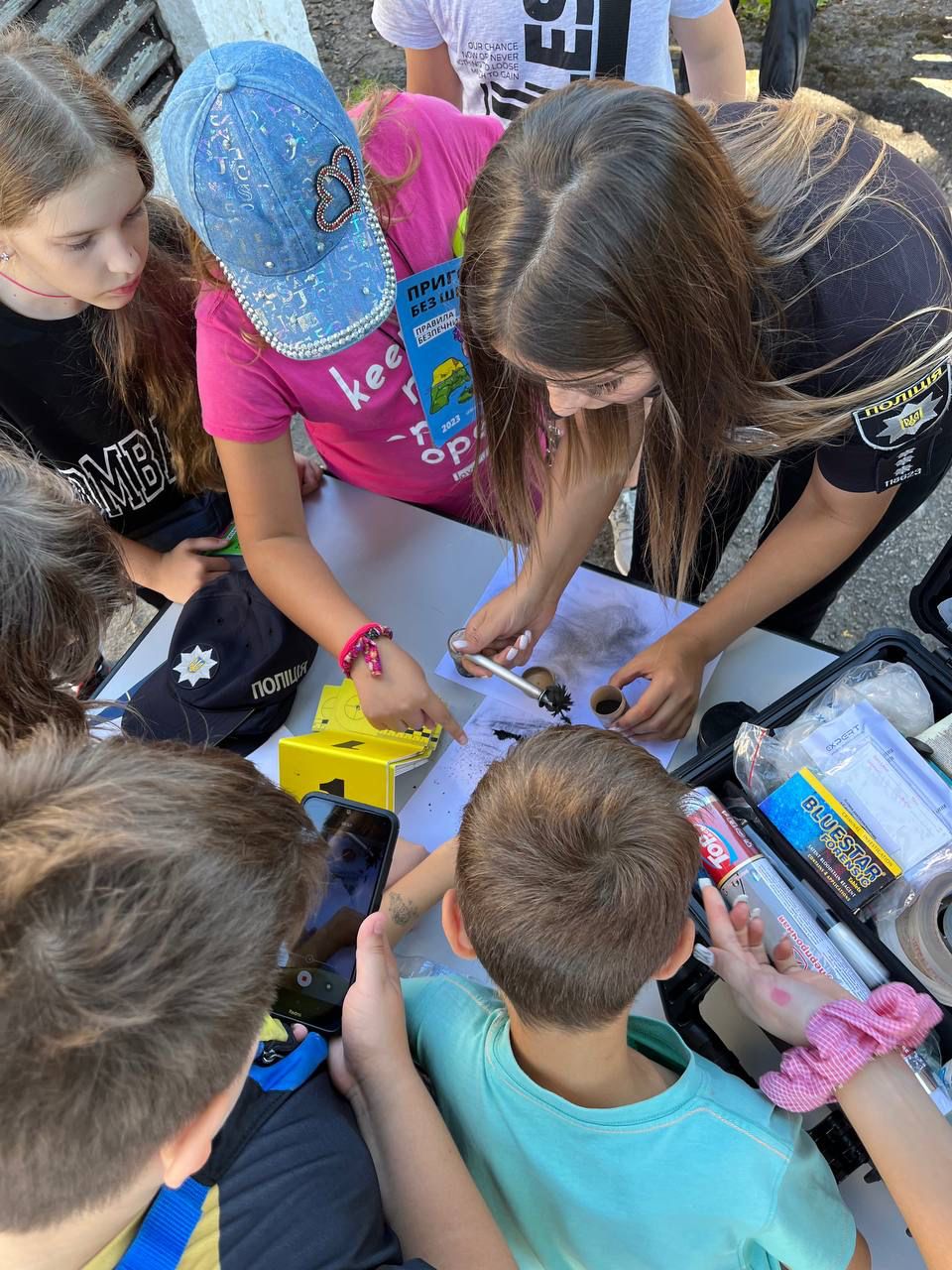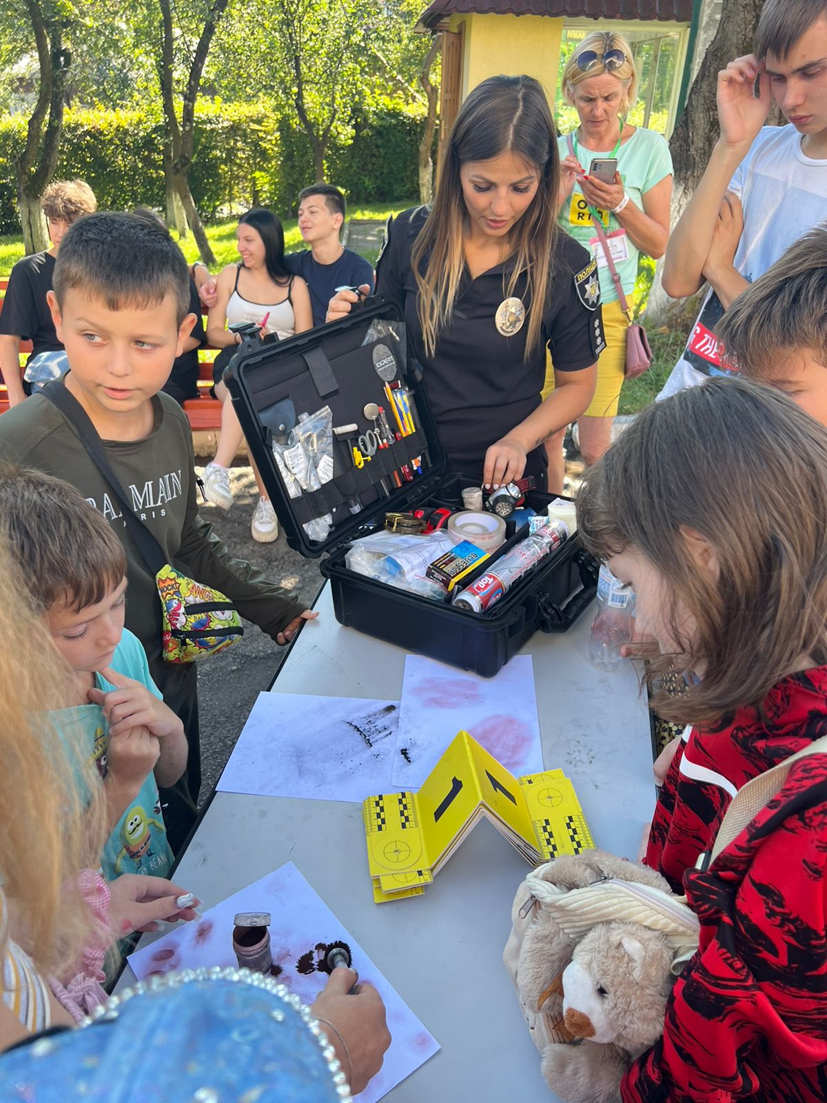 У заході взяли участь 100 дітей віком від 6 до 17 років. Поліцейські розповіли їм про свою роботу, продемонстрували амуніцію та спецзасоби. Особливо зацікавила дітей розповідь експертів-криміналістів про тонкощі роботи зі слідами злочину на місці події. А кожен охочий міг зафіксувати свої відбитки пальців у пересувній криміналістичній лабораторії.