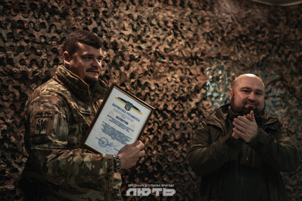 Нагороди вручив заступник командира бригади Артем Лисогор: «Надважкий напрямок. Важка та водночас надзвичайно важлива робота особового складу. «Лють» бореться й розвивається. За ці роки ви виконували завдання, які ще кілька років тому здавалися неможливими. Вітаю вас і дякую за службу!»