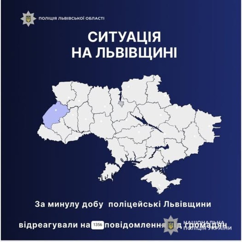 За минулу добу, 22 серпня, поліцейські Львівщини відреагували на 1356 повідомлень громадян